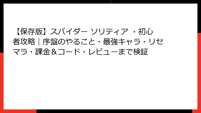 スパイダーソリティア:リセマラ&最強要素完全解説