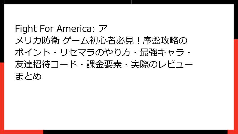 Fight For America: アメリカ防衛 ゲームのリセマラと最強要素ガイド