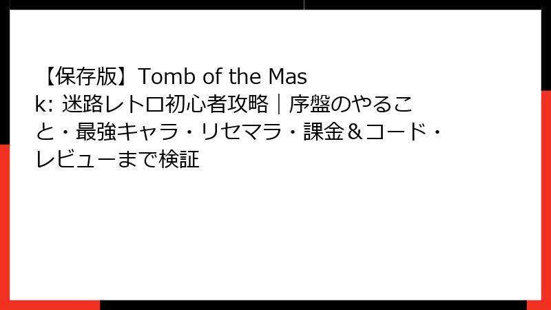 - Bacon – The GameとTomb of the Mask: リセマラ要素と最強キャラ・アイテムの詳細ガイド