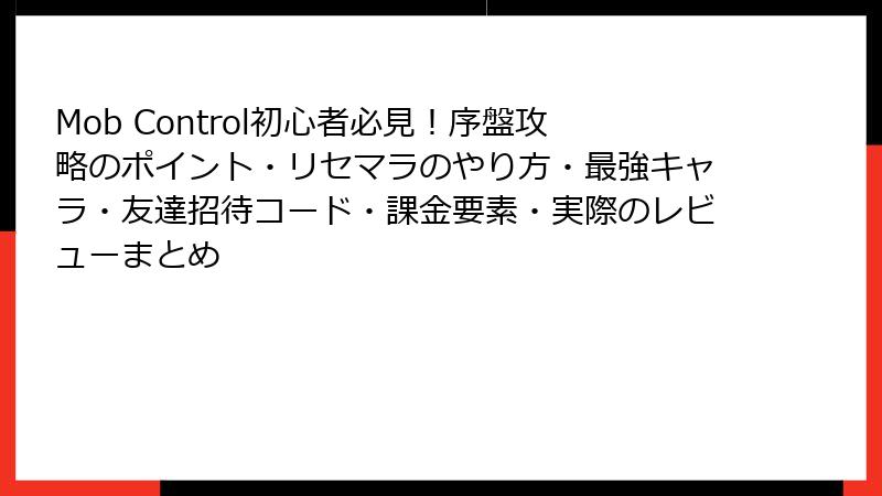 Mob Control初心者必見!序盤攻略のポイント・リセマラのやり方・最強キャラ・友達招待コード・課金要素・実際のレビューまとめ