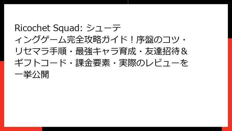 Ricochet Squad: リセマラ&最強キャラ完全ガイド