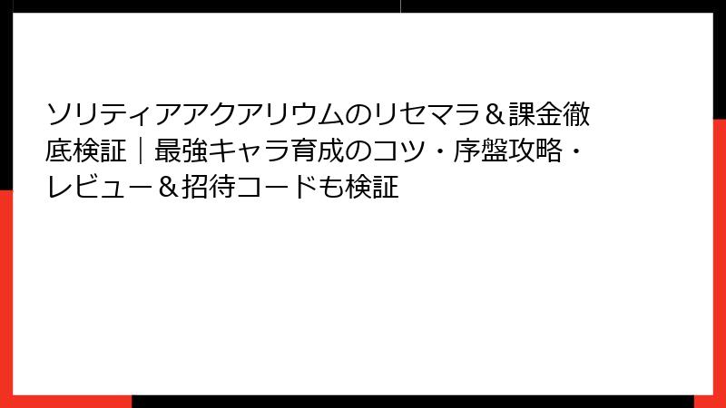 ソリティアアクアリウムのリセマラ&最強要素完全解説