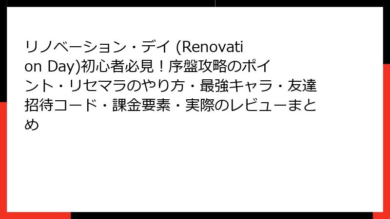 リノベーション・デイ (Renovation Day) リセマラ&最強キャラ完全ガイド