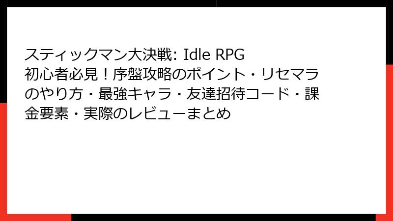 スティックマン大決戦: Idle RPG初心者必見!序盤攻略のポイント・リセマラのやり方・最強キャラ・友達招待コード・課金要素・実際のレビューまとめ