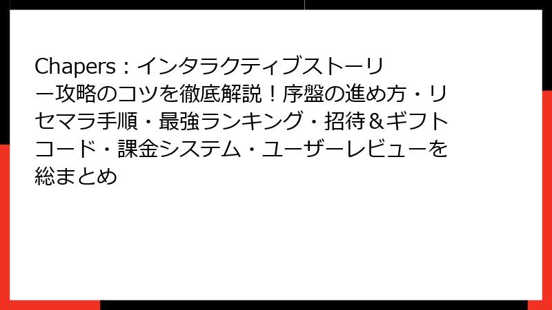 Chapers:インタラクティブストーリー攻略のコツを徹底解説!序盤の進め方・リセマラ手順・最強ランキング・招待&ギフトコード・課金システム・ユーザーレビューを総まとめ