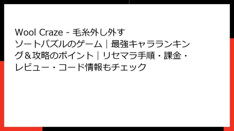 前回の攻略ガイドに続き、熱いリクエストにお答えして「Wool Craze」のリセマラ要素と最強キャラ・カードについて徹底調査! ガチャゲー好きにはたまらない情報をお届けしますが、結論から言うと…このゲームは純粋パズルゆえに独自の立ち位置。リセマラ不要でサクサク進められるのが魅力です。非課金でも数百ステージ制覇可能! 詳しく解説していきます。