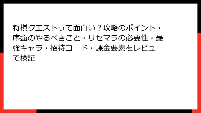 将棋クエストって面白い?攻略のポイント・序盤のやるべきこと・リセマラの必要性・最強キャラ・招待コード・課金要素をレビューで検証