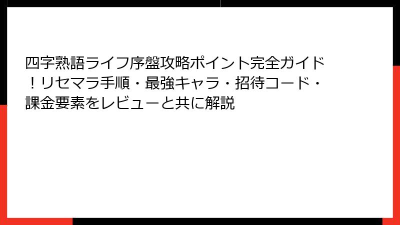 四字熟語ライフ序盤攻略ポイント完全ガイド!リセマラ手順・最強キャラ・招待コード・課金要素をレビューと共に解説