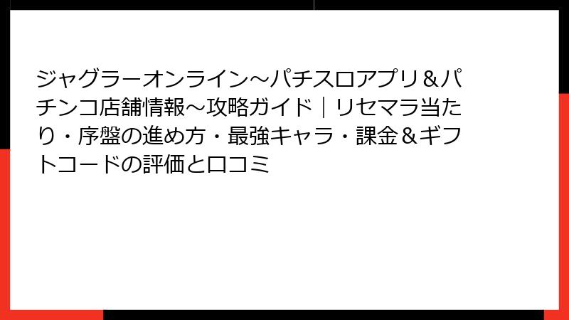 ジャグラーオンライン リセマラ&最強アバター完全ガイド!ガチャ効率と無双構築を徹底解説