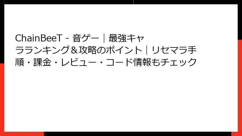 ChainBeeT – 音ゲー|最強キャラランキング&攻略のポイント|リセマラ手順・課金・レビュー・コード情報もチェック