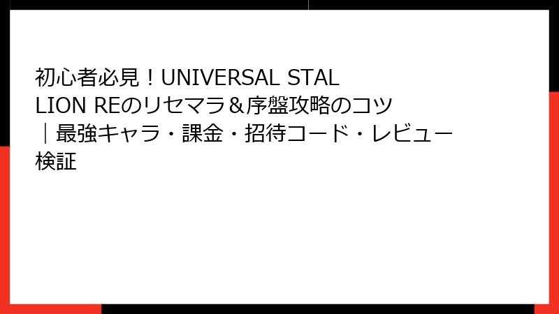 『UNIVERSAL STALLION RE(ユニスタRE)』にはリセマラ要素がしっかり存在します。チュートリアル直後のガチャで高レア馬を狙えるため、序盤の育成効率が劇的に変わります。特に繁殖馬として使えるUR(ウルトラレア)以上を1頭確保すれば、無課金でも重賞制覇がスムーズに。