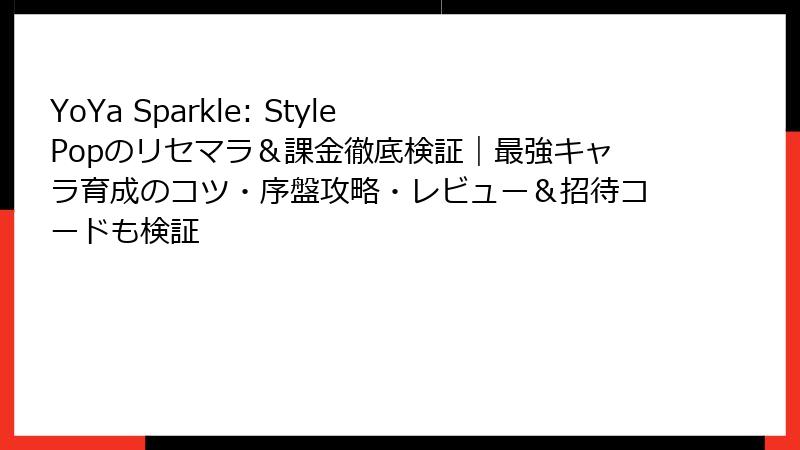 2. YoYa Sparkle: Style Pop リセマラ&最強完全ガイド:本当の勝ち筋を掴め!