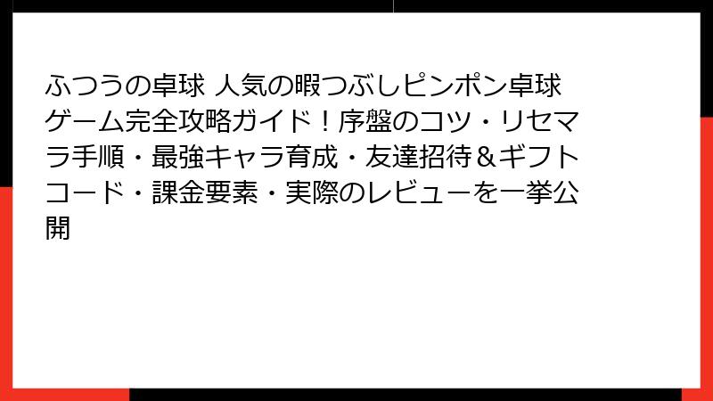 ふつうの卓球:リセマラ&最強キャラの完全真相!攻略の極意を公開