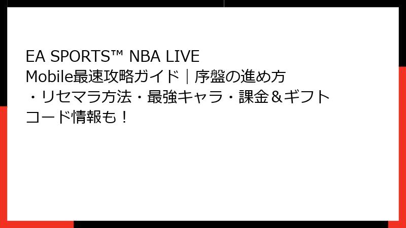 NBAの興奮を掌中に!EA SPORTS™ NBA LIVE Mobileは、実在のNBA選手を駆使してチームを構築し、熱いバスケットボールバトルを楽しむモバイルゲームです。新シーズンのアップデートでグラフィックスが向上し、よりリアルなプレイ体験が魅力。無課金でもコツを押さえれば上位を目指せます。このガイドでは、ゲーム概要から序盤の進め方、攻略の核心までを徹底解説します。