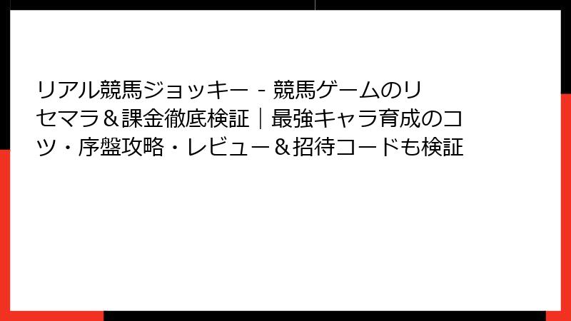 リアル競馬ジョッキー – 競馬ゲーム リセマラ&最強馬完全攻略ガイド