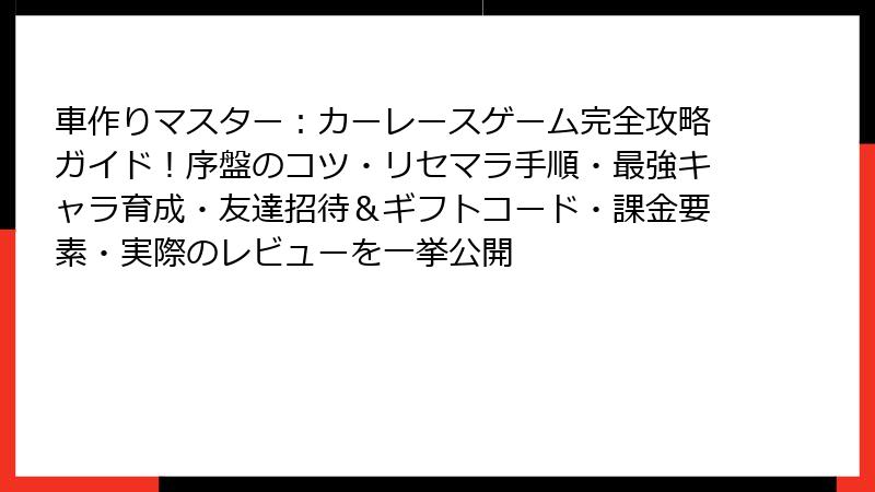 車作りマスター:カーレースゲーム リセマラ&最強構築完全ガイド