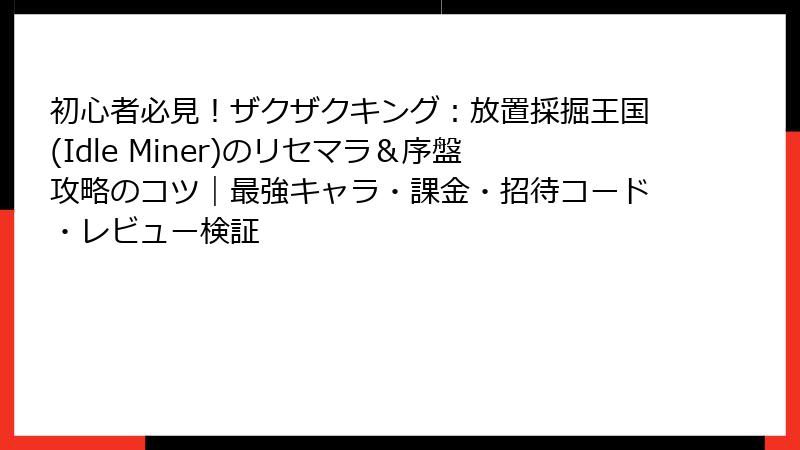 初心者必見!ザクザクキング:放置採掘王国(Idle Miner)のリセマラ&序盤攻略のコツ|最強キャラ・課金・招待コード・レビュー検証