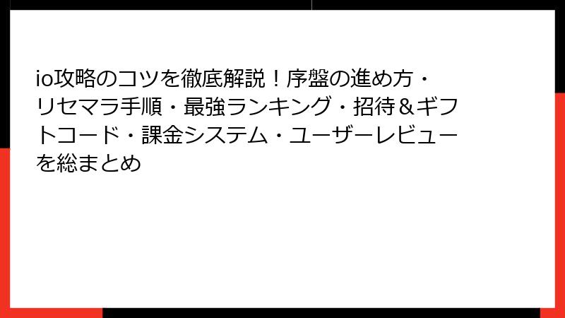 io攻略のコツを徹底解説!序盤の進め方・リセマラ手順・最強ランキング・招待&ギフトコード・課金システム・ユーザーレビューを総まとめ