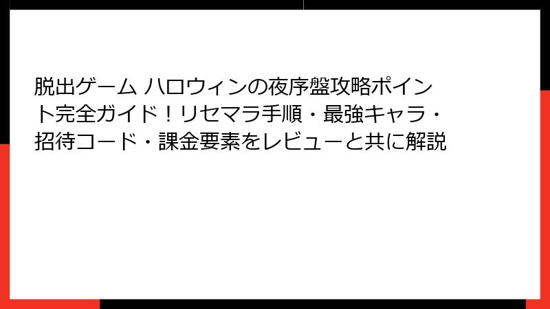 脱出ゲーム『ハロウィンの夜』リセマラ&最強キャラ完全ガイド