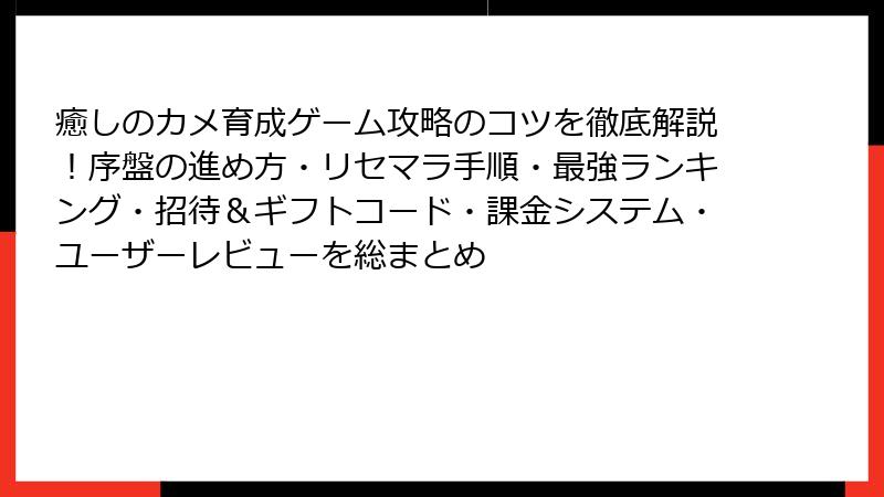 癒しのカメ育成ゲーム リセマラ&最強キャラ徹底解説!シンプル癒しゲームの本質