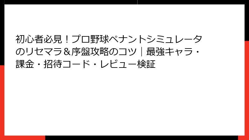 プロ野球ペナントシミュレータ リセマラ&最強選手完全ガイド