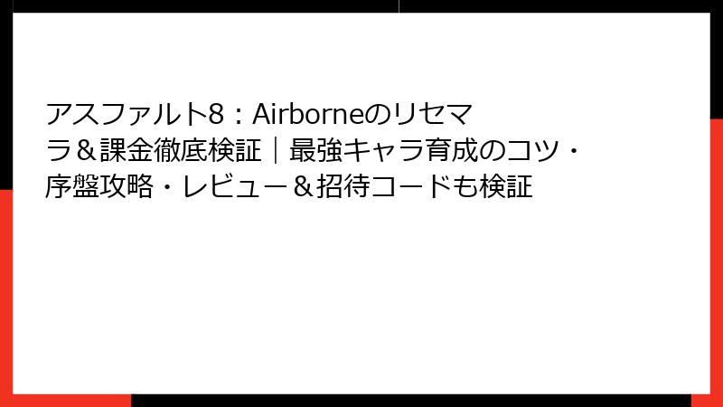 『アスファルト8:Airborne』は爽快レーシングの定番ですが、リセマラ(リセットマラソン)は本格的に存在せず、非推奨のゲームです。それでも序盤ブーストを狙うなら手法をマスターし、最強マシンを知って効率的に進めましょう。この記事では、リセマラの詳細、当たり判定、最強マシン(車&カード)をクラス別に徹底解説。無課金でもSクラス無双の道筋を公開!