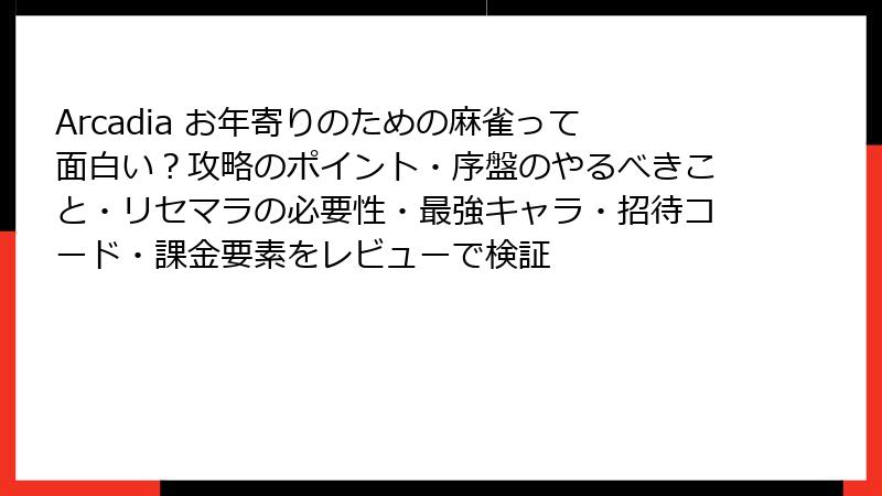 Arcadia お年寄りのための麻雀 リセマラ&最強キャラ完全解説!シンプル設計の真実
