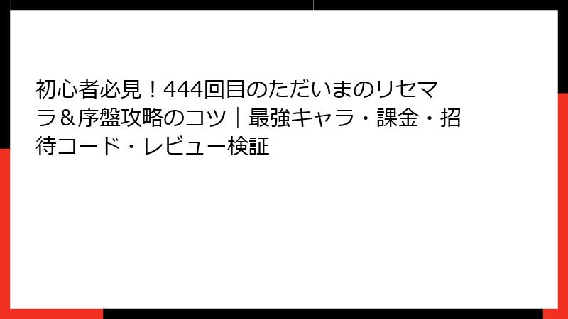 初心者必見!444回目のただいまのリセマラ&序盤攻略のコツ|最強キャラ・課金・招待コード・レビュー検証