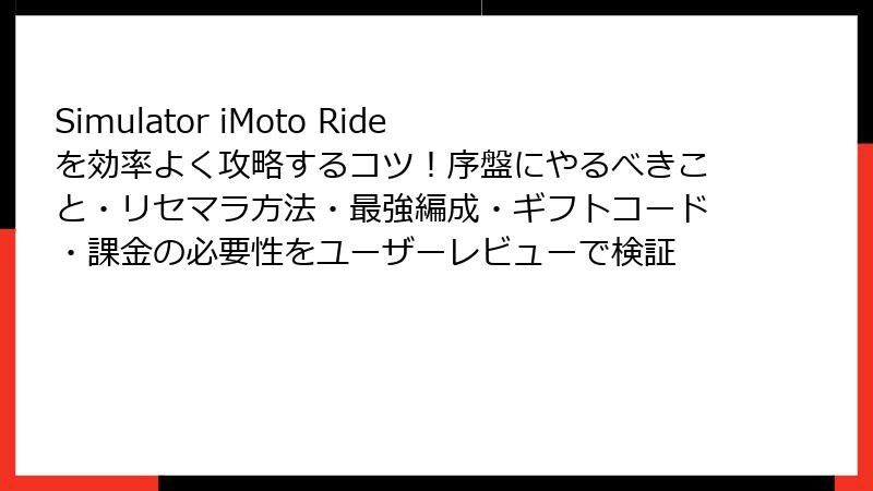 Simulator iMoto Ride リセマラ&最強バイク完全ガイド!シンプルゆえの真実
