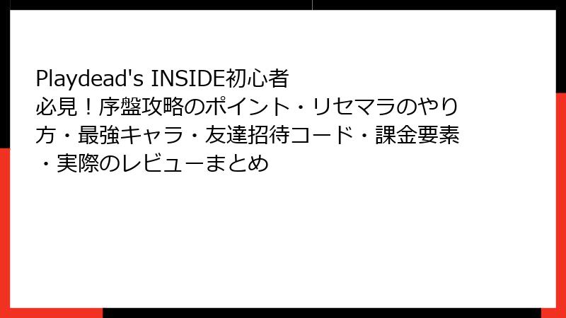 Playdead’s INSIDE初心者必見!序盤攻略のポイント・リセマラのやり方・最強キャラ・友達招待コード・課金要素・実際のレビューまとめ