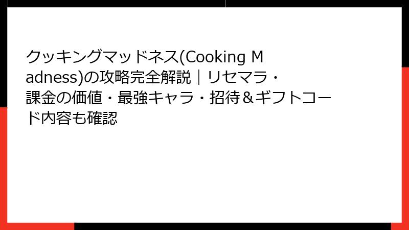 クッキングマッドネス リセマラ&最強要素完全ガイド!ガチャなしのクッキング世界で輝くコツを徹底解説