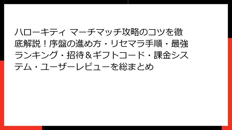 前回の攻略ガイドに続き、気になるリセマラの可否と「最強」要素について深掘り! 可愛いサンリオグッズを集める癒し系パズル「ハローキティ マーチマッチ」ですが、ガチャやリセマラは本当に必要? 初心者から上級者まで知っておきたい真実を、信頼できる情報源に基づいてお届けします。