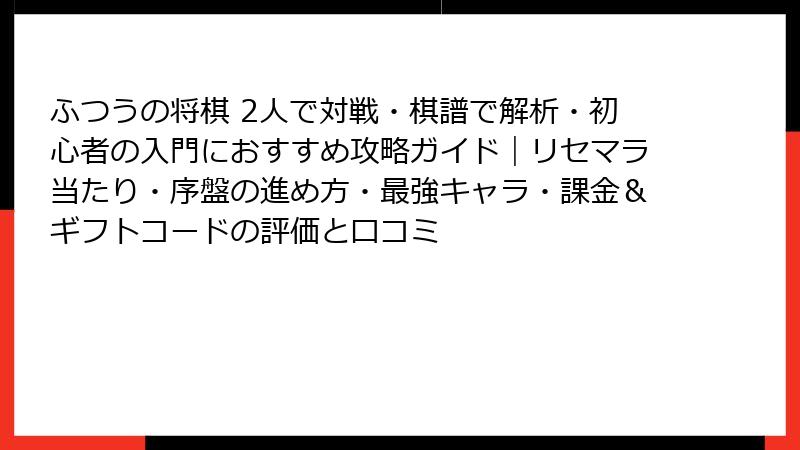 ふつうの将棋 2人で対戦・棋譜で解析・初心者の入門におすすめ攻略ガイド|リセマラ当たり・序盤の進め方・最強キャラ・課金&ギフトコードの評価と口コミ
