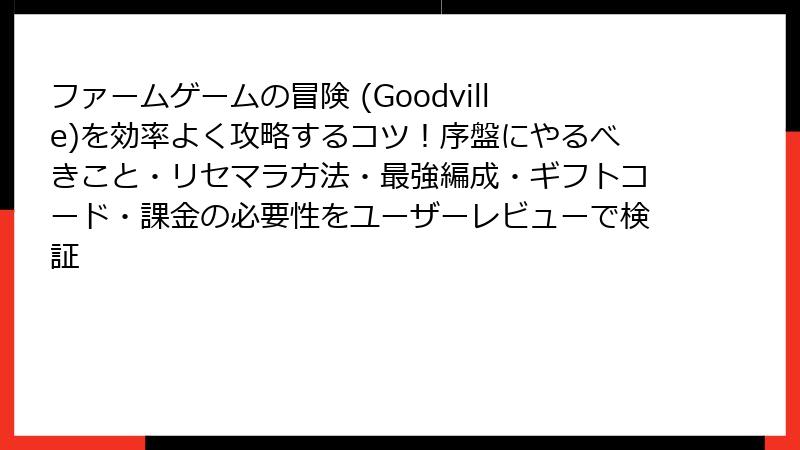 ファームゲームの冒険 (Goodville) リセマラ&最強要素完全ガイド