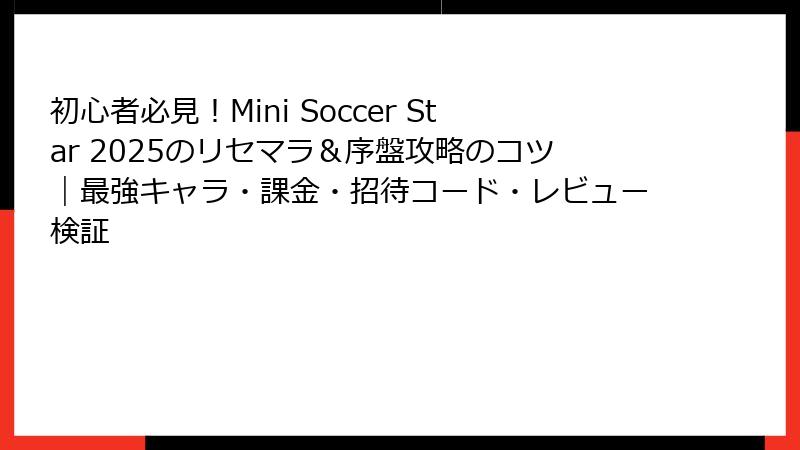 Mini Soccer Star 2025 リセマラ&最強キャラ完全ガイド