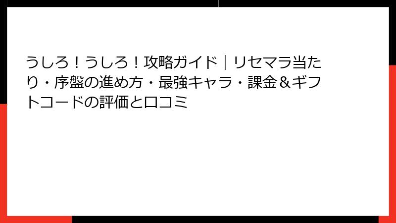 うしろ!うしろ!攻略ガイド|リセマラ当たり・序盤の進め方・最強キャラ・課金&ギフトコードの評価と口コミ