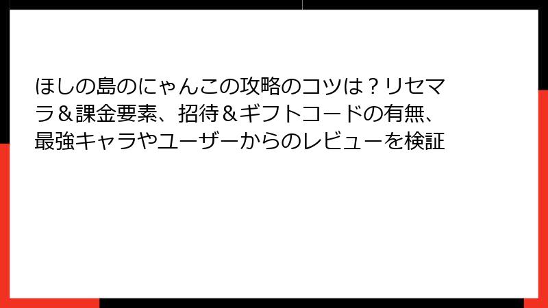 ほしの島のにゃんこの攻略のコツは?リセマラ&課金要素、招待&ギフトコードの有無、最強キャラやユーザーからのレビューを検証