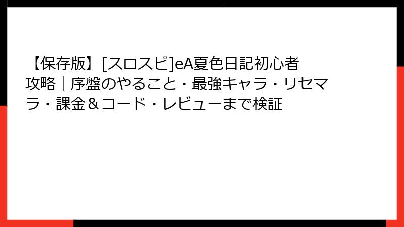【スロスピ】eA夏色日記 リセマラ完全ガイド&最強スキルプレート徹底解説!無課金スタートダッシュの鍵