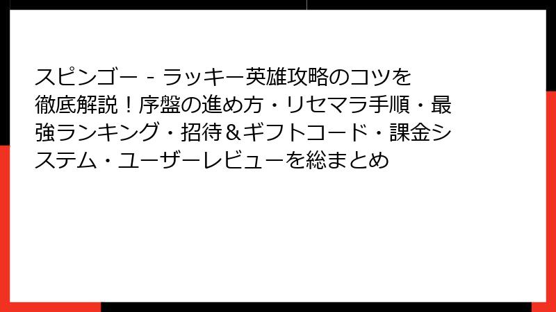 スピンゴー – ラッキー英雄 リセマラ&最強ガイド