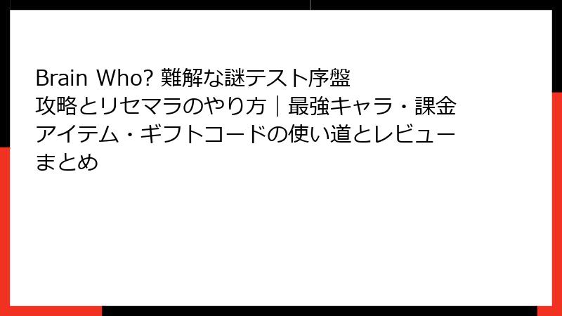 スマホアプリ『Brain Who? 難解な謎テスト』は、ガチャや育成要素ゼロの純粋パズルゲーム。リセマラを期待する声も聞こえますが、実際のところはどうなのか?この記事では、リセマラの有無から代替手法、最強キャラ・カードの真相までを徹底解剖。無課金でも全クリ可能な理由とコツを、ブログ風に詳しくお届けします。