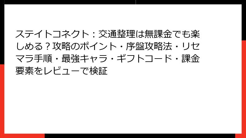 ステイトコネクト:交通整理は無課金でも楽しめる?攻略のポイント・序盤攻略法・リセマラ手順・最強キャラ・ギフトコード・課金要素をレビューで検証