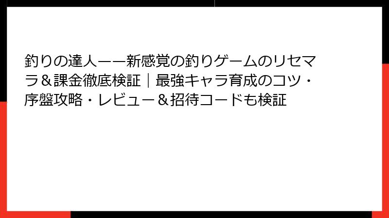 ガチャなしの純粋釣りゲーム「釣りの達人——新感覚の釣りゲーム」で、リセマラは本当に必要? 最強の竿や魚カードはどれ? 本記事では、リセマラの是非から、無課金でも狙える最強装備までを徹底解説。序盤の効率化も交え、ランキング上位を目指すための読み応え満載の内容をお届けします。