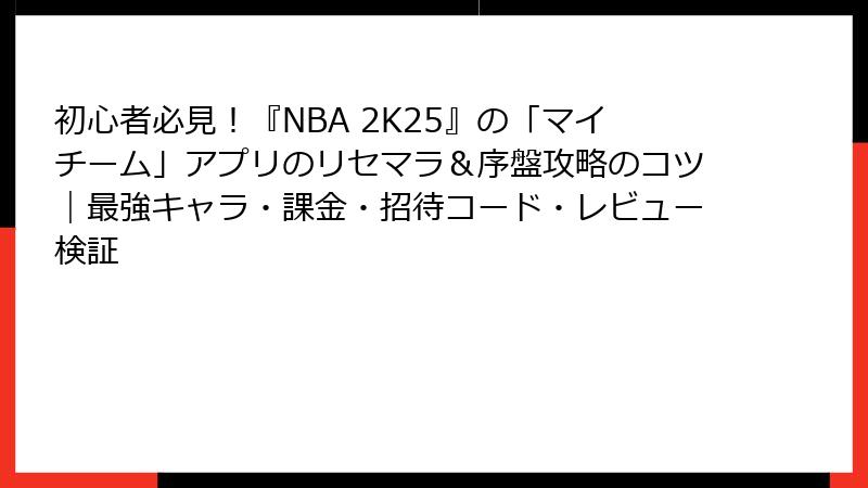 初心者必見!『NBA 2K25』の「マイチーム」アプリのリセマラ&序盤攻略のコツ|最強キャラ・課金・招待コード・レビュー検証