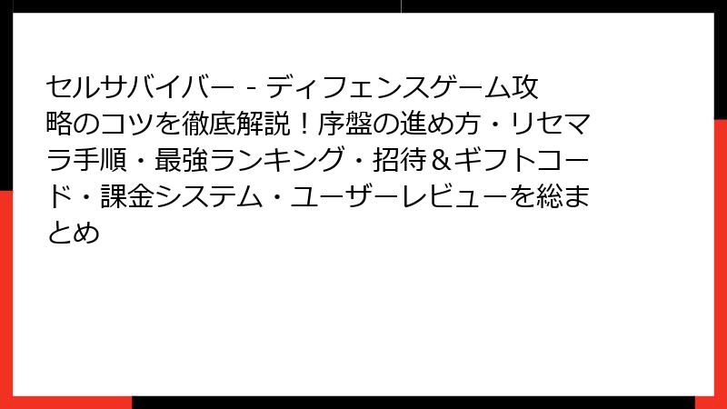 セルサバイバー – ディフェンスゲーム攻略のコツを徹底解説!序盤の進め方・リセマラ手順・最強ランキング・招待&ギフトコード・課金システム・ユーザーレビューを総まとめ