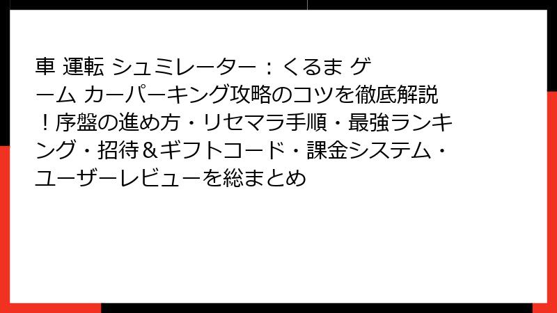 車 運転 シュミレーター : くるま ゲーム カーパーキング リセマラ&最強車完全ガイド