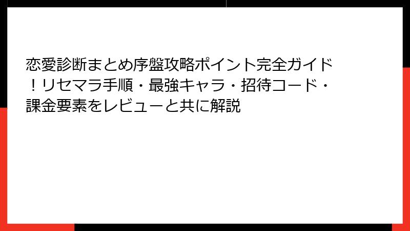 スマホアプリ「恋愛診断まとめ」は、恋愛心理テストの宝庫として人気ですが、ガチャ要素やリセマラ(リセットマラソン)を期待してインストールした人もいるはず。今回は、そんな疑問にズバリお答え!リセマラ手法や最強キャラの有無を徹底調査。結論から言うと、どちらも存在しません。でも、それがこのアプリの最大の魅力なんです。以下で詳しく解説します。