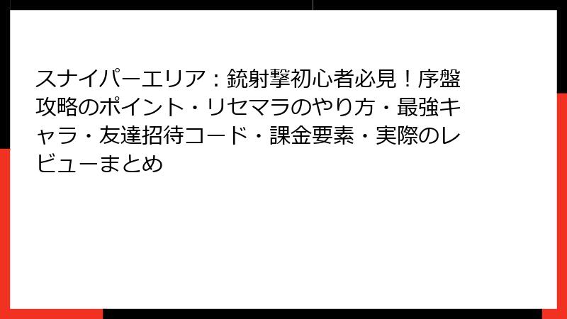 スナイパーエリア:銃射撃初心者必見!序盤攻略のポイント・リセマラのやり方・最強キャラ・友達招待コード・課金要素・実際のレビューまとめ