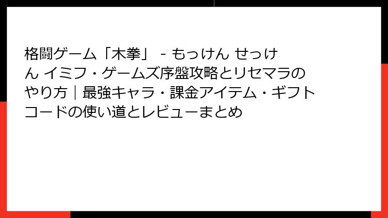 棒人間格闘の定番「木拳」 – もっけん せっけん イミフ・ゲームズ。ガチャなしのシンプル育成が魅力ですが、リセマラは必要?最強キャラは誰?そんな疑問を徹底解明!リセマラ不要の理由から、最強ファイターの作り方まで、ブログ風に詳しく解説します。