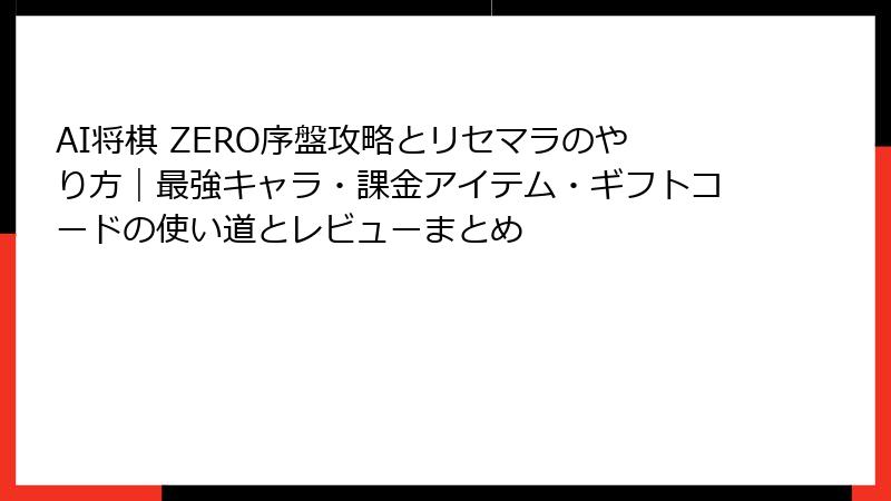 前回の攻略ガイドに続き、「AI将棋 ZERO」(iOS)/「将棋ZERO」(Android)のリセマラ要素と最強キャラについて徹底解説。将棋アプリの真髄はガチャではなく、純粋な頭脳戦。リセマラ不要の理由から、代わりの効率的上達法、最強の「駒活用」と「AI攻略」まで、読み応え満載でお届けします。