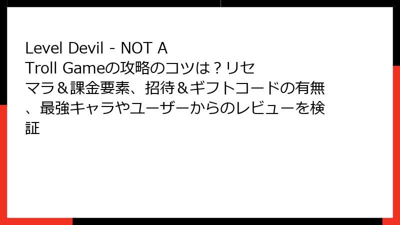 人気のスマホ死にゲー「Level Devil – NOT A Troll Game」に、リセマラ要素はあるのか? 最強キャラやカードは? 多くのガチャゲーと違い、このゲームは運ではなく純粋なスキル勝負。リセマラ不要で即本番、200レベルを制覇するコツを徹底解説します!